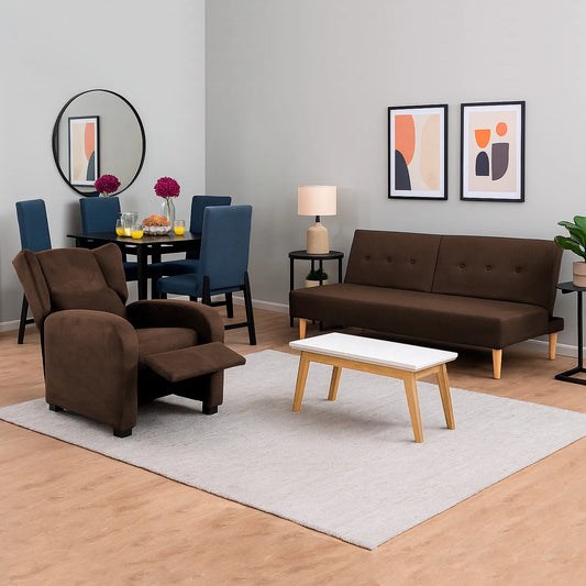 Juego de sala Otoño: Sofá cama, comedor 4 pts, mesa aux sillón reclino