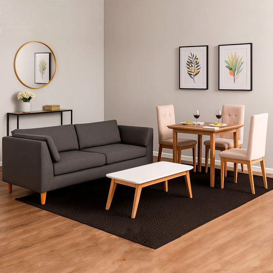 Juego de sala Mini Neptuno: Sofá 3 Pts, Comedor 4 Pts y Mesa Aux